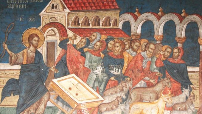 Tot în Lunea Mare, s-a petrecut scena alungării negustorilor din Templul din Ierusalim, când Hristos le-a zis: „Casa Mea casă de rugăciune se va chema, iar voi o faceți peșteră de tâlhari!” (Matei 21, 10-13).