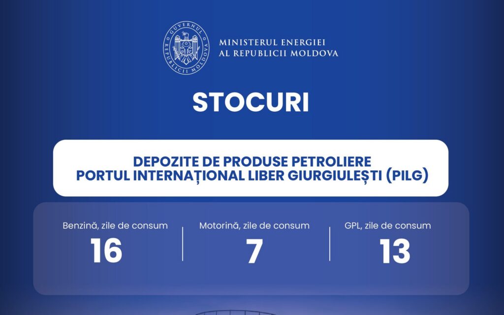 Aproximativ 2200 tone de motorină și 1400 tone de benzină au fost importate marți, 24 martie, în Republica Moldova, atât prin intermediul Portului Internațional Liber Giurgiulești, cât și cu cisterne auto și feroviare, anunță autoritățile. Potrivit Ministerului Energiei, în stocuri mai este benzină pentru 16 zile, gaz petrolier lichefiat pentru 13 zile și motorină pentru […]