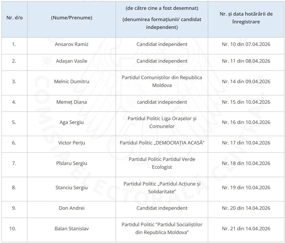 Zece candidați s-au înregistrat în cursa pentru funcția de primar al municipiului Orhei, în cadrul alegerilor locale noi programate pentru 17 mai.